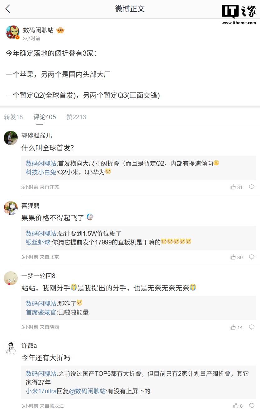 一个苹果,另两个是国内头部大厂一个暂定 Q2(全球首发),另两个暂定 Q3(正面交锋)其中,暂定 Q2 的新品被曝首发横向大尺寸阔折叠,而且是暂定 Q2,内部有提速倾向。